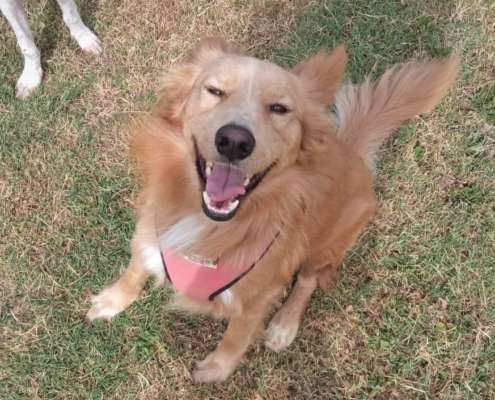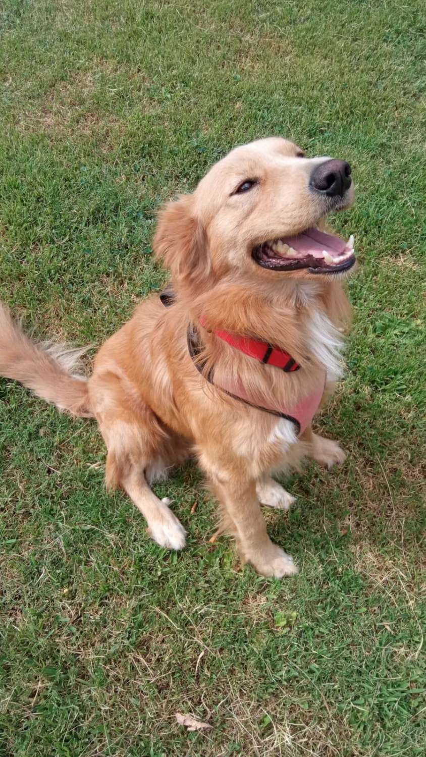 Akan fue recogido tras un atropello, con la pata totalmente destrozada, se llevó con el hueso fuera muchos días hasta que lo recogimos. Tenía una gran infección y casi se muere, pero tras muchos días de ingreso no solo salvó la vida sino también su pata. Hoy es un perro perfectamente normal, no cojea siquiera. De carácter es un perro magnífico, cariñoso, tranquilo y muy sociable.