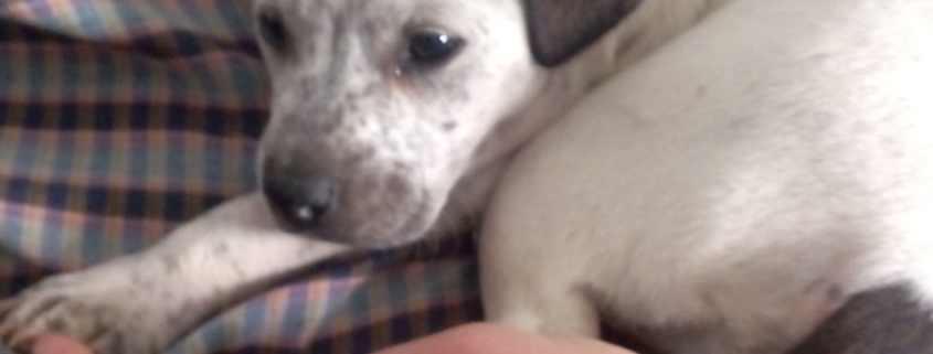 Arena estaba abandonada en un pueblo de Sevilla, en una urbanización de parcelas en Carmona. Estaba con el celo e hizo que los perros de la persona que nos dió el aviso se pelearan a muerte (de hecho el más pequeño casi murió, lo operaron de urgencias y casi no lo cuenta). Así que la mujer que nos avisó y que en un principio iba a quedársela de acogida hizo que se arrepintiera de ello.