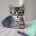Bea fue rescatada junto a sus hermanitos Pili y Alejandro. Es una gatita dulce y confiada. Una ronroneadora a la que le encanta jugar con su rascador.