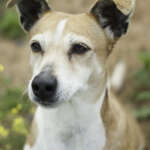 Bit ha tenido la mala suerte de nacer podenco. Andaba cruzándose por la carretera como si nada, en una de esas se le cruzó a una chica que no supo mirar para otro lado. Estaba muy asustado, pero insistió y con un poco de paciencia consiguió que se dejara coger. Estaba muerto de hambre, muy delgado y deshidratado, lleno de bichos y con varias heridas y cicatrices.