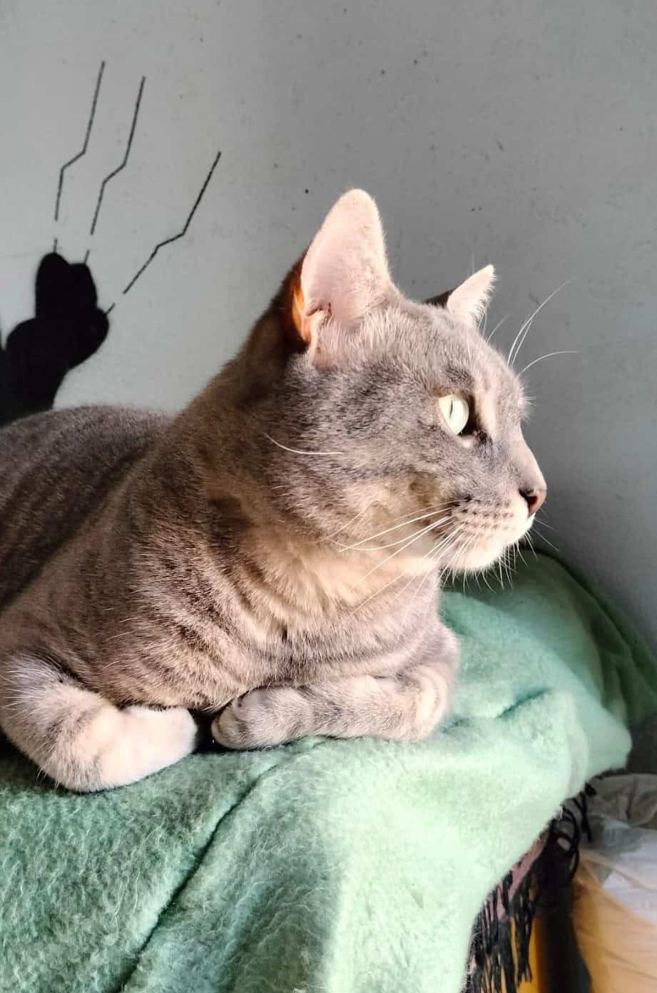 Este pequeño volvió a nacer el día que lo sacaron de la calle. Dieron aviso a una veterinaria de que un gato había sido disparado y había que dormirlo, al ir a buscarlo y ver la gravedad de la herida real decidieron que no podían terminar con su vida, por suerte la bala igual que había entrado salió, después de castrar su destino era volver al mismo lugar, con lo que ello conllevaba ….. y dividieron ponerse en contacto con nosotros, viendo el carácter imposible dar un no por respuesta.
