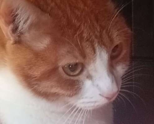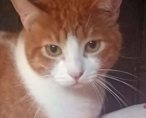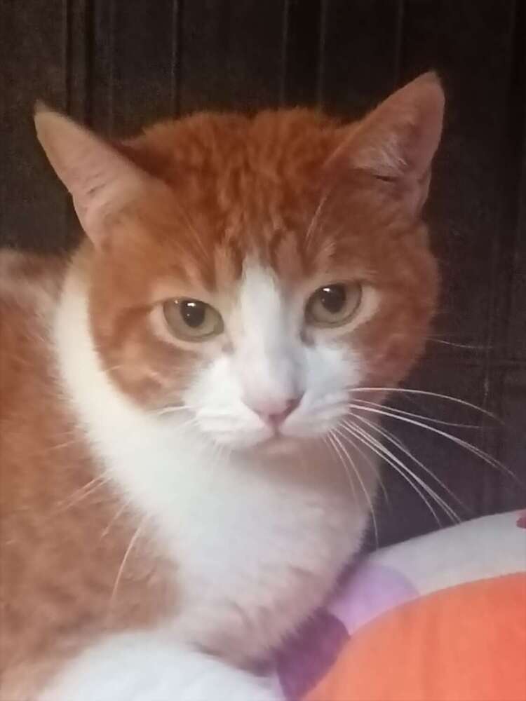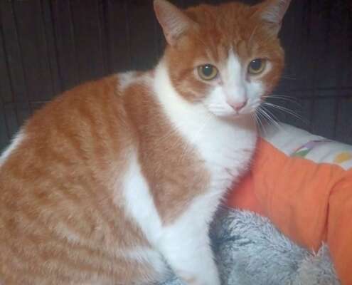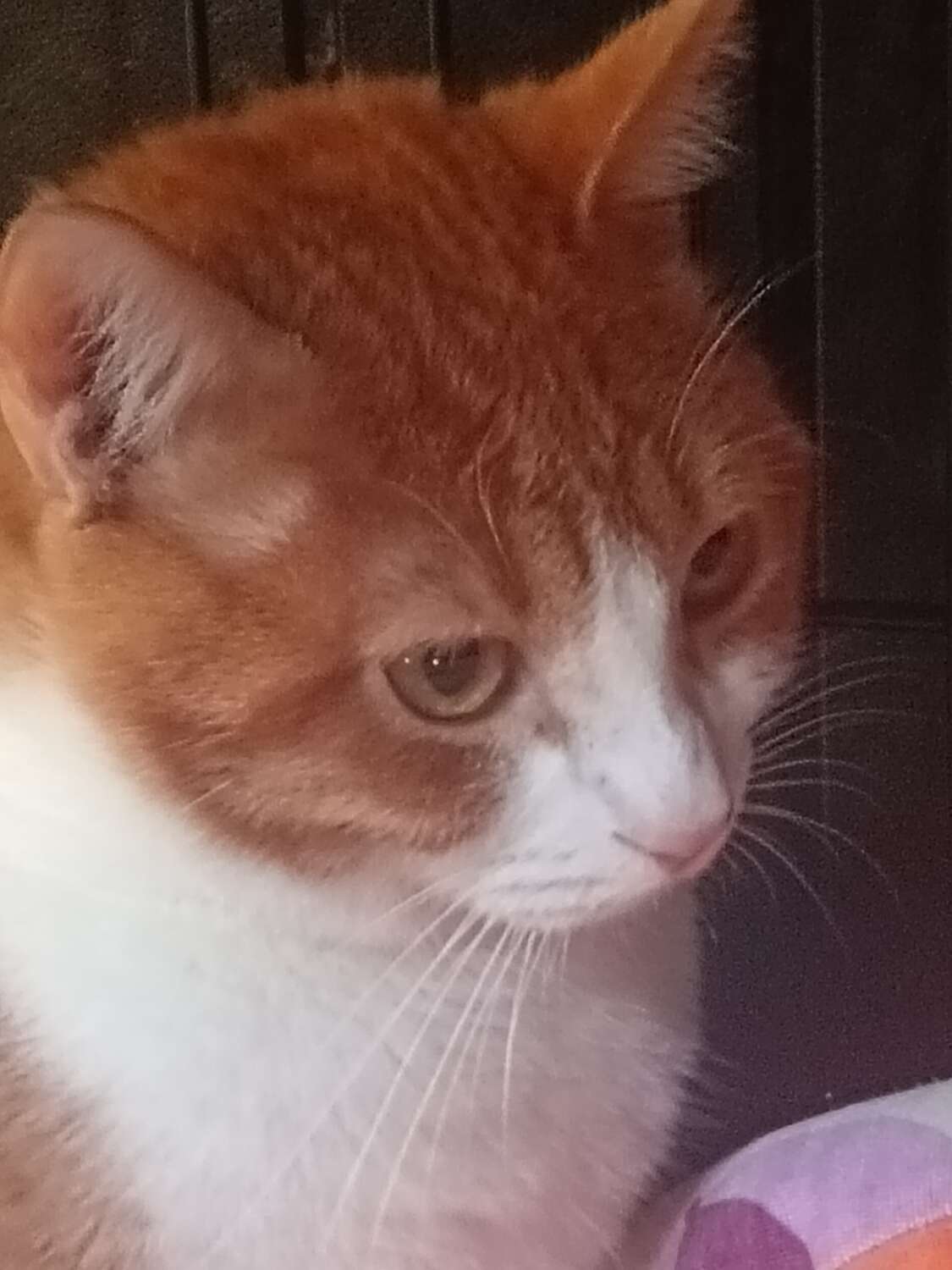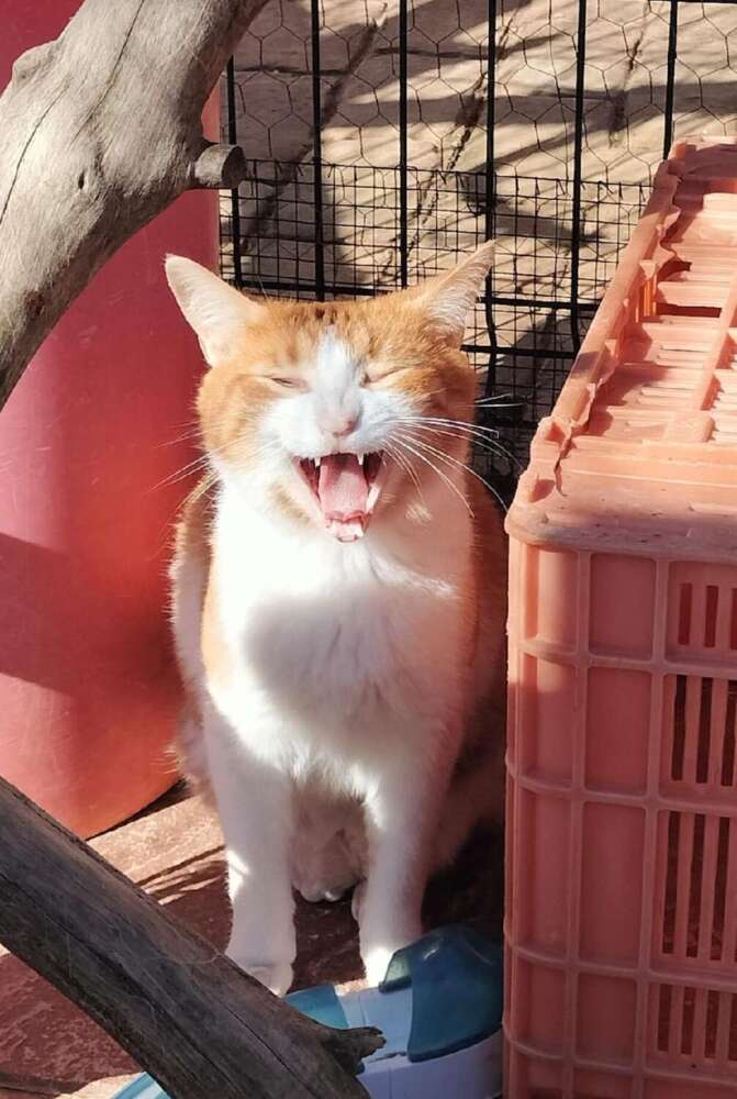 Cheedar es un gatito naranja y blanco, hermano de Mufasa, tiene su colita doblada por varios puntos, no sabemos si es genético o que algo le pasó, es tímido de primeras. Necesita una familia que le dedique tiempo para que él se suelte, es un auténtico comilón, disfruta de las caricias comiendo. A los cambios le cuesta un poco adaptarse.