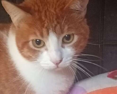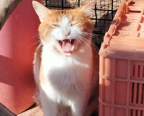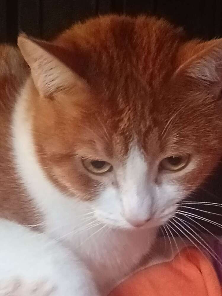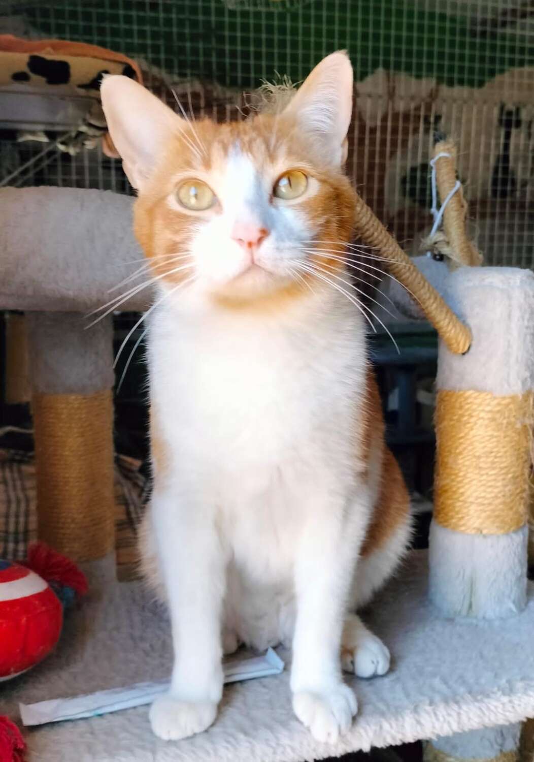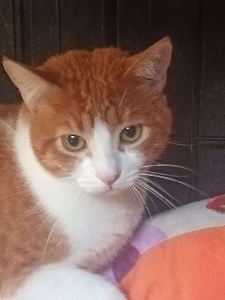 Cheedar es un gatito naranja y blanco, hermano de Mufasa, tiene su colita doblada por varios puntos, no sabemos si es genético o que algo le pasó, es tímido de primeras. Necesita una familia que le dedique tiempo para que él se suelte, es un auténtico comilón, disfruta de las caricias comiendo. A los cambios le cuesta un poco adaptarse.
