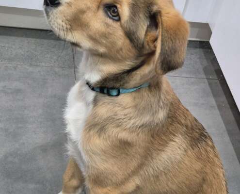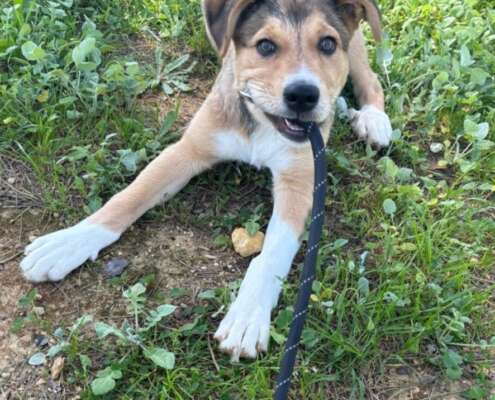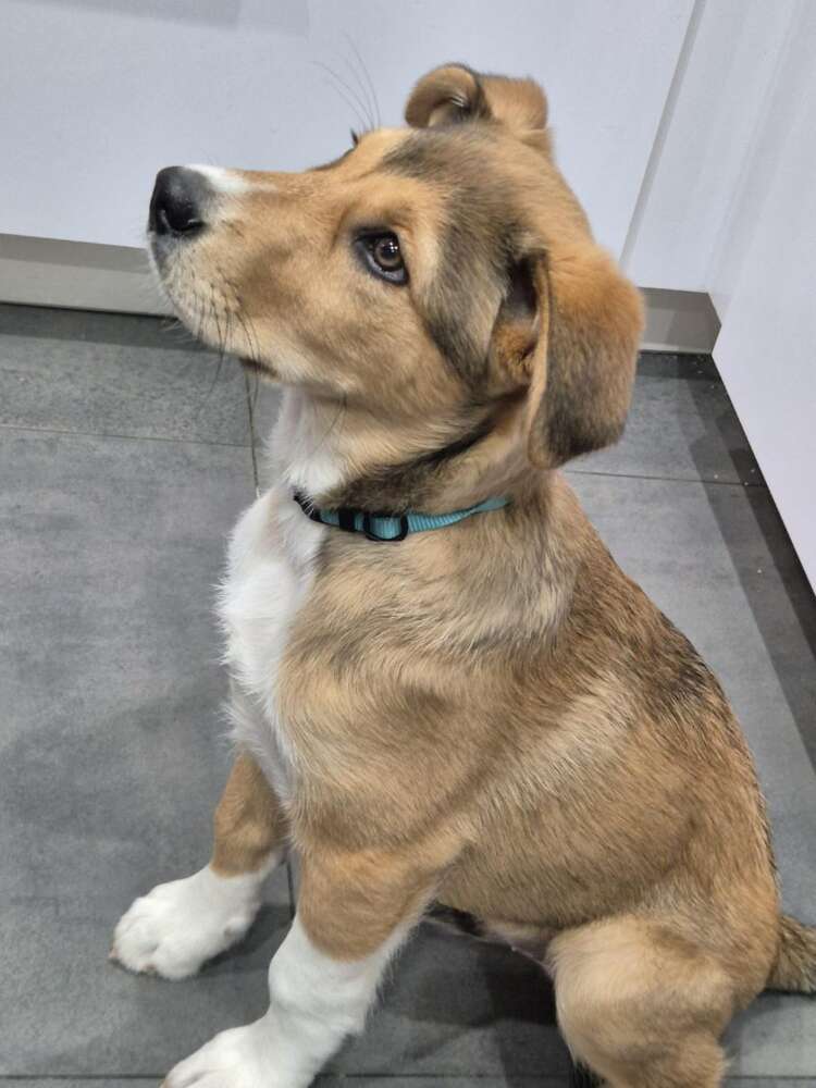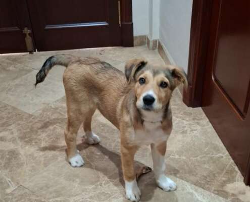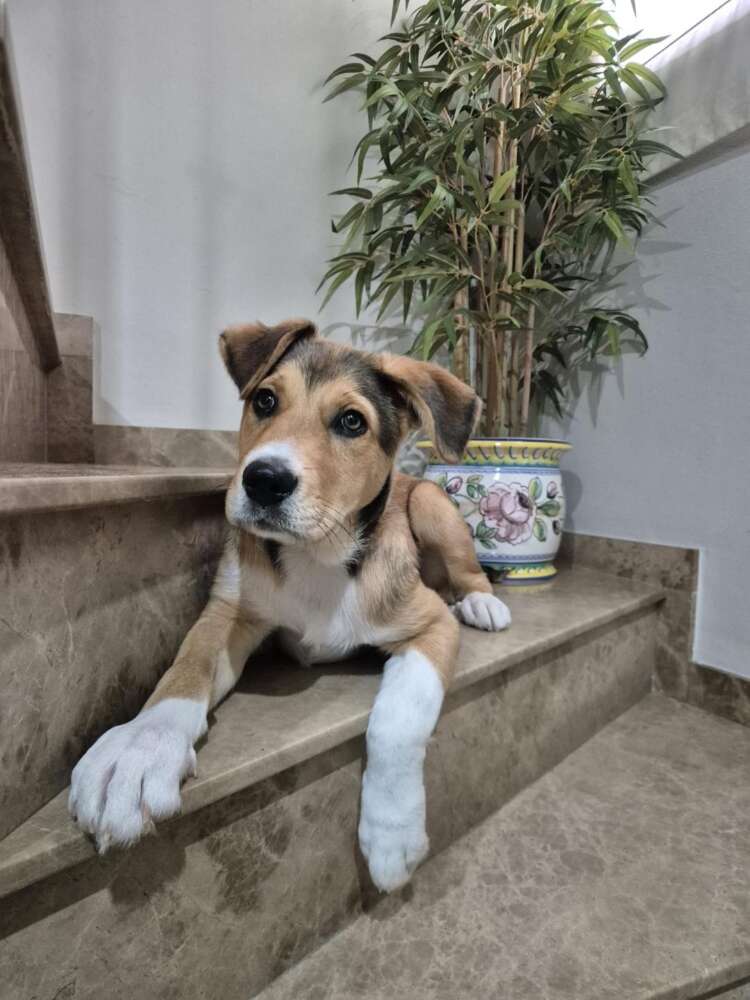 Le gusta mucho jugar y salir a pasear. Es muy cariñoso con todos, no sólo con su familia, y sociable con otros perros. Como cachorro que es tiene energíamy se divierte con cualquier cosa. Duerme toda la noche y, en cuanto que se despierta por la mañana, pide su comida.