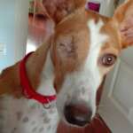 Ginebra, preciosa podenquita abandonada en una zona militar se buscaba la vida siempre en peligro. Ahora a salvo busca una familia.