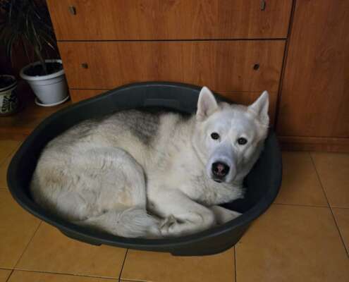 Sociabilidad: Se lleva bien con otros animales. Tiene más experiencia conviviendo con otros perros, aunque en general se muestra sociable. También con personas de cualquier edad y niños.