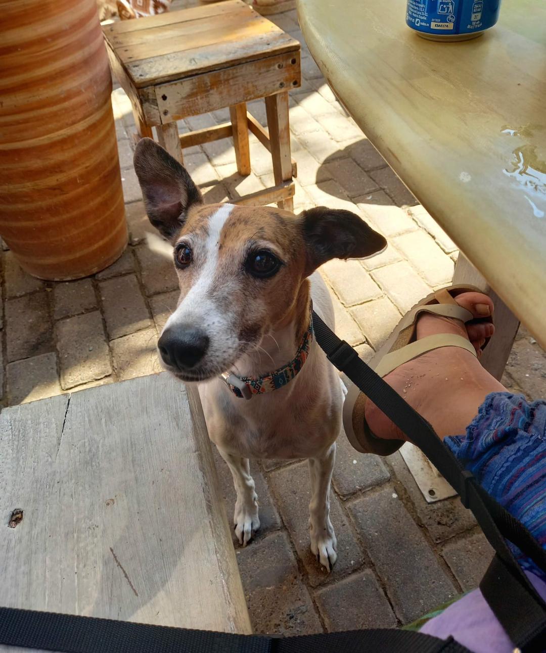 Es un cruce de galgo enano y bodeguero, básicamente es como un galgo enano pero más tochito. Pesará unos 15 kilos como mucho.