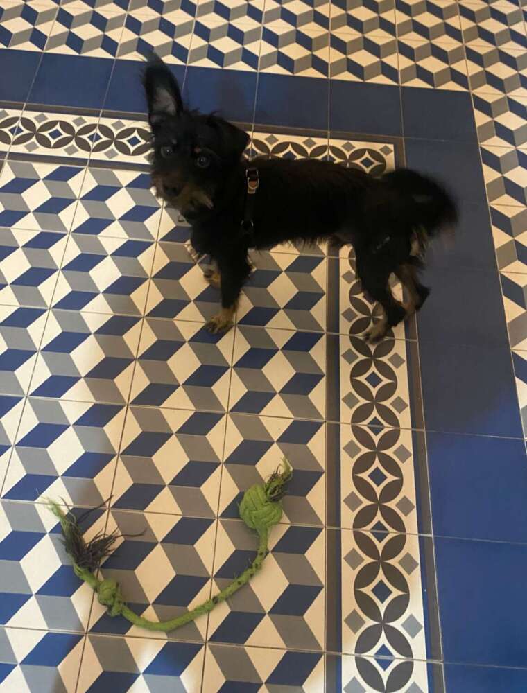 Ahora está en una casita de acogida, donde se recupera, sólo necesita masajes y paseos cortitos para coger musculatura en su patita, al ser pequeño no le quedará mucha secuela. En casa se porta bien, controla las necesidades, juega con sus juguetes, pasea bien, es muy sociable con todas las personas y con perros. Compatible con gatos.