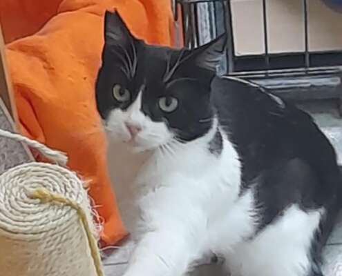 Linda es una gatita super cariñosa, una colaborada nuestra la vio en la calle y le estuvo dando de comer hasta que se ganó su confianza y la pudo coger.