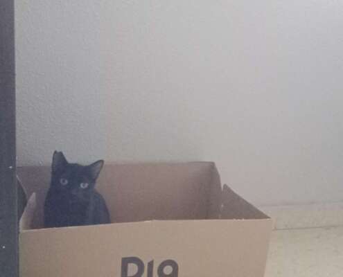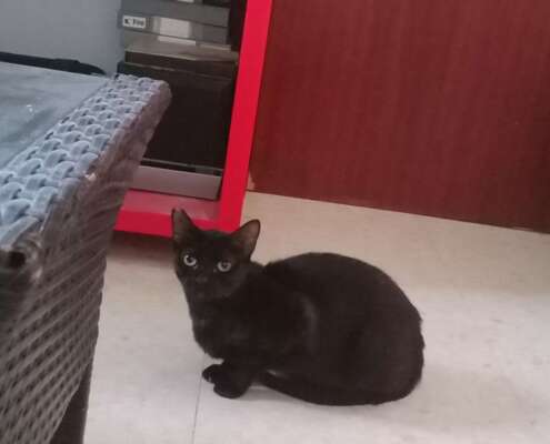 Fue castrada y desparasitada, y actualmente vive de acogida en la casa de una compañera que no puede tenerla en un mejor lugar que una pequeña habitación.