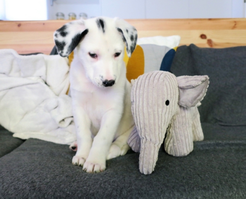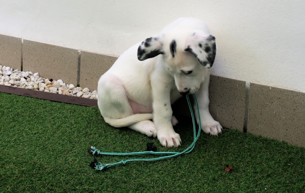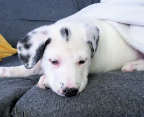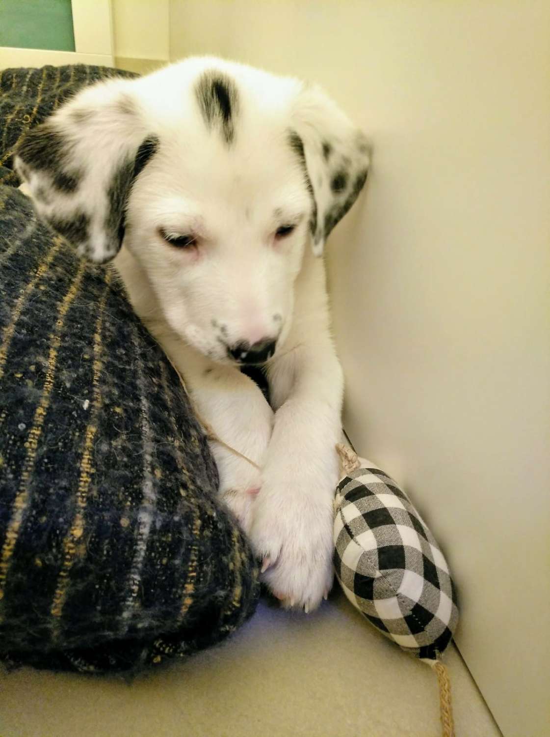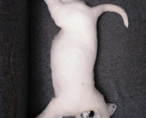Luna es una hembrita, con un físico muy particular, unas manchas muy originales y cara de pena. Busca familia responsable.