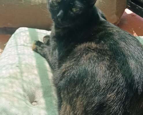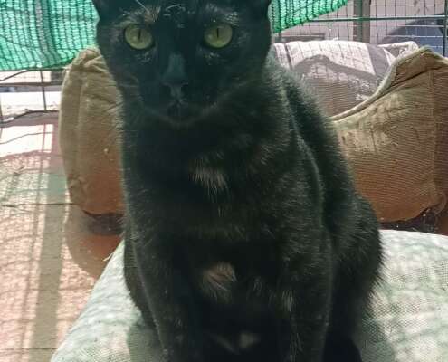 Meline fue entregada en el zoosanitario de Sevilla junto a sus hermanos Melino y Melina. Están creciendo en una casa de acogida, pero necesitan encontrar a su familia definitiva.