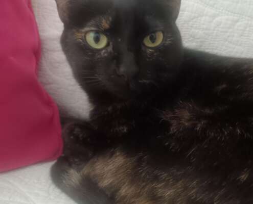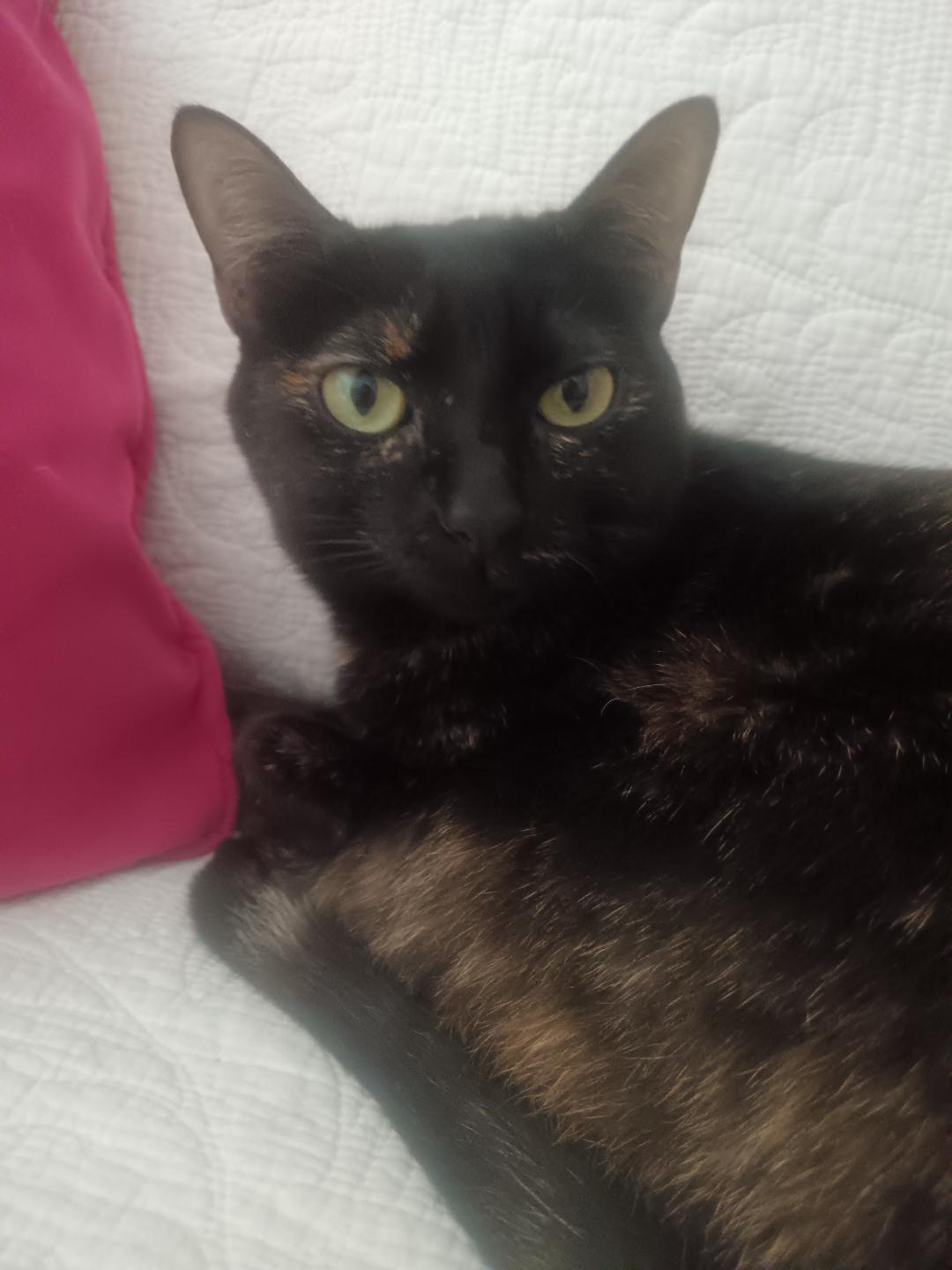 Es una gata preciosa, sociable, compatible con perros y, por supuesto, con otros gatos, es una cachorrona feliz, tragona, le gusta todo lo que le des, incluido el yogurt griego, le encanta! Le gusta que la acaricies aunque no suele ronronear. Está lista para irse a una casa!!!