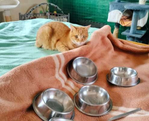 Esta preciosa gatita fue rescatada por unos niños junto a sus hermanos, su madre se refugió en un coche en los días de lluvia, con la mala suerte de que el propietario del coche los escuchó y buscó, los niños al ver como este individuo salió no dudaron en coger a los peques y ponerlos a salvo, la mamá gato al ser feral, no tuvo buen final ya que a los pocos días apareció muerta…