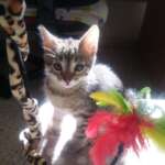 La más pequeñita de su camada: Nuez. Es una gatita tímida y tranquila, algo más oscura que su hermana Pipa. Su ojito derecho estaba totalmente cerrado cuando se rescató y sigue en tratamiento por una antigua úlcera.