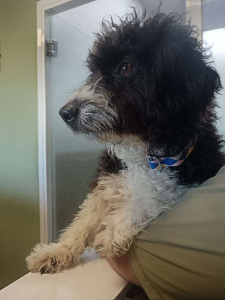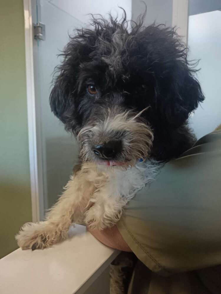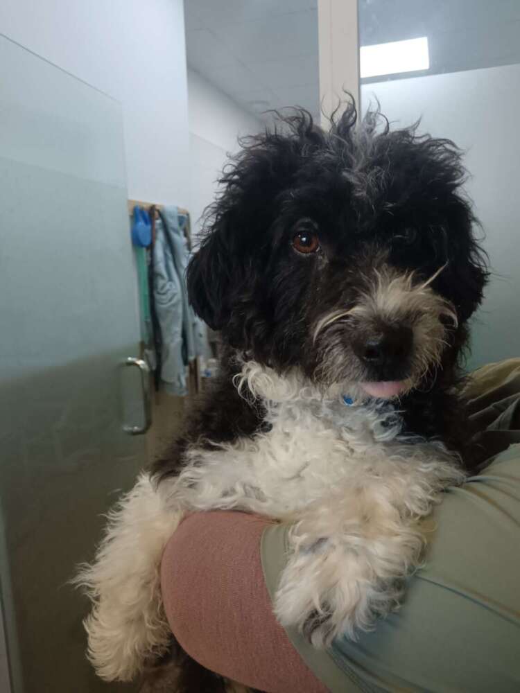 A Palermo lo dejaron en la puerta de una veterinaria colaboradora de Arca, con un golpe en la boca. no sabemos si intencionado o no.