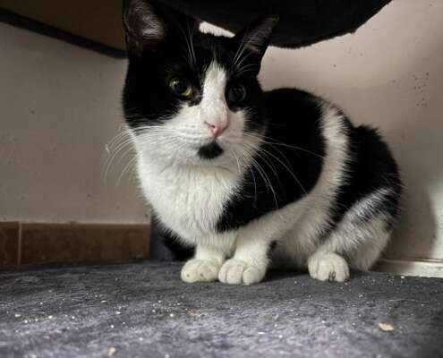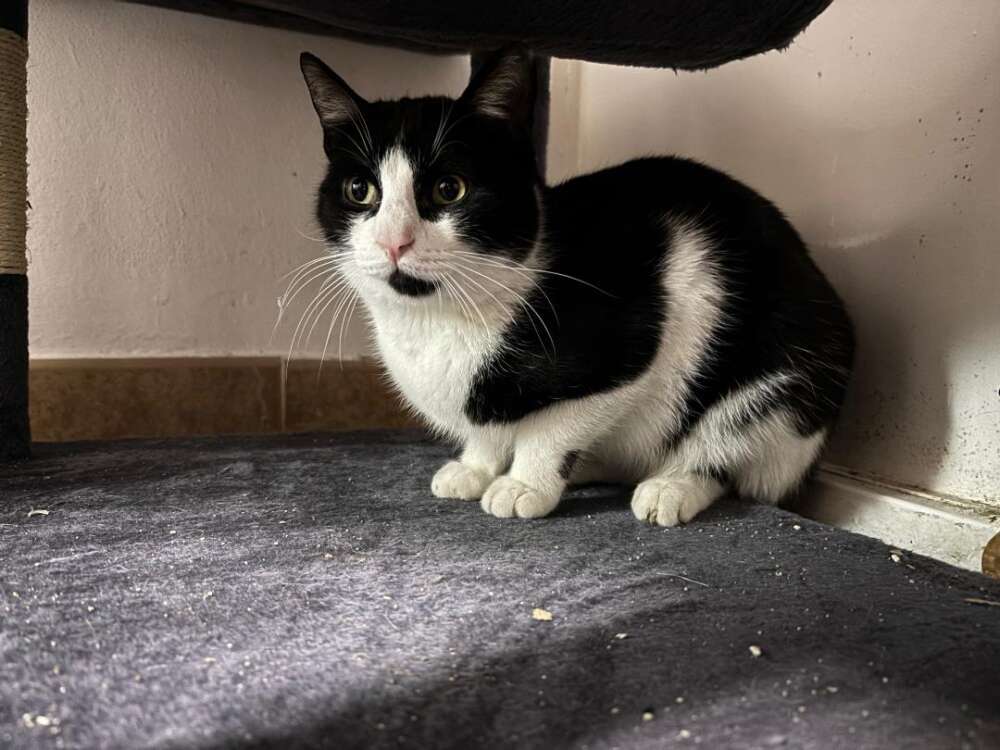 Pepo es un gato muy gracioso, tímido al principio, pero súper charlatán y observador, le encanta comer, jugar, utiliza el arenero perfectamente, convive con más gatos y, cuando coge confianza, se deja tocar y manipular sin problemas.
