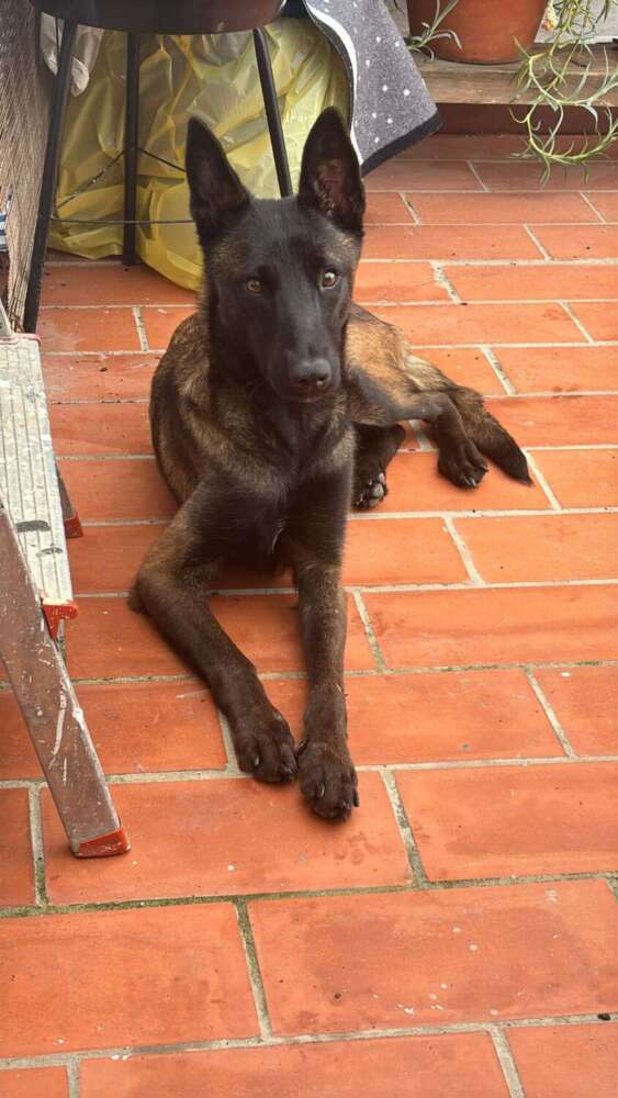 - Raza y edad: Pastor Belga Malinois, aproximadamente entre 1 año y medio y 2 años.