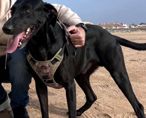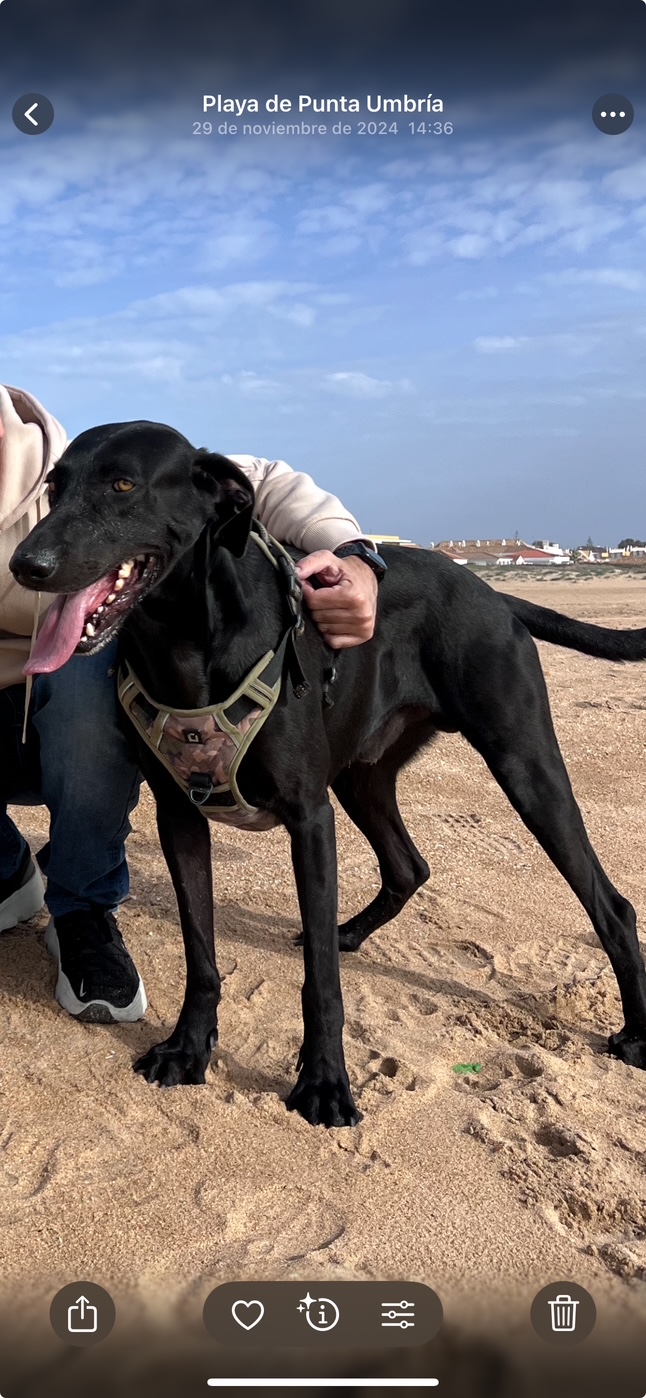 Este señorito busca un hogar, es un perro miedoso y no termina de fiarse de las personas pero le encanta correr y jugar, se lleva bien con todos lo perros menos con los bracos, que una vez le atacó uno y les cogió miedo a esta raza.