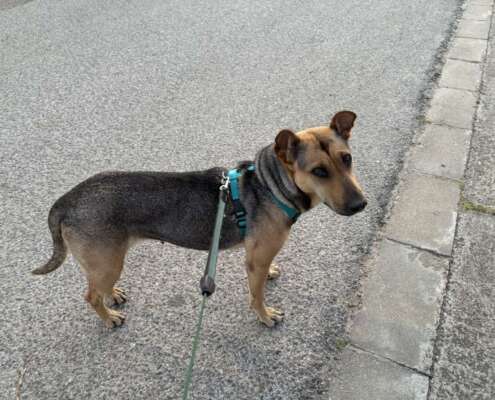 Esta preciosa cruce de Pastor Alemán y Shar Pei de dos añitos, ha sido encontrada y merece un hogar donde la cuiden y la quieran.