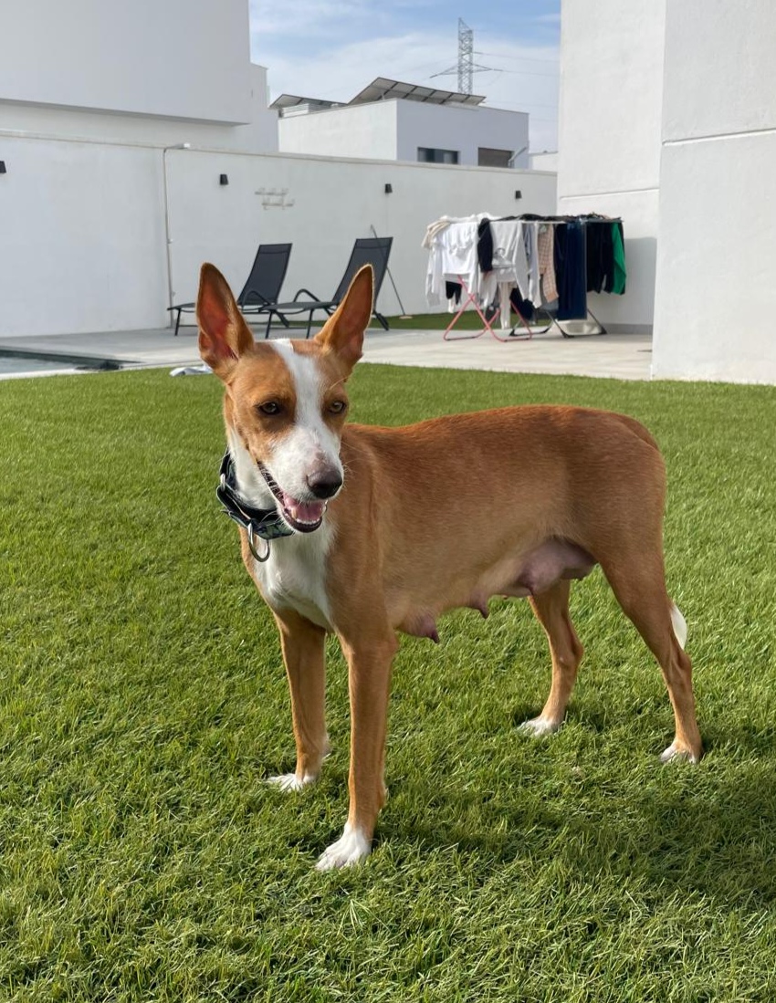 Siena tenía dueño pero un día, sin venir a cuento, decidió que no la quería más. Acababa de parir, no sabemos nada de sus cachorros, ella pudo felizmente entrar en nuestra familia.