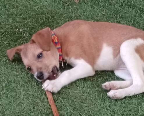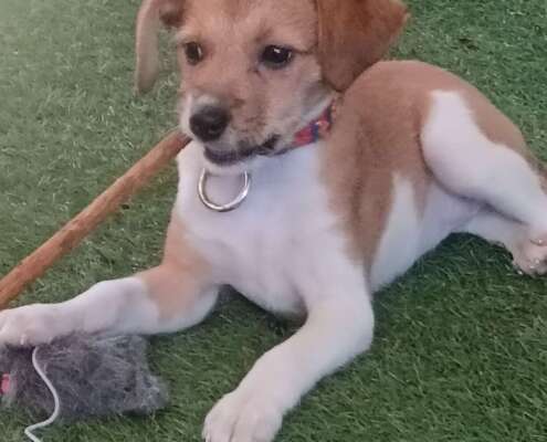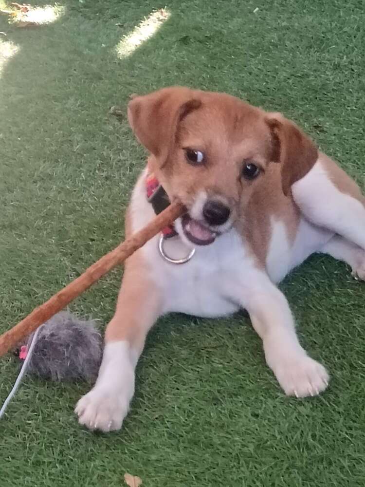 Es una cachorra activo, obediente, muy juguetona, duerme del tirón toda la noche, es muy cariñosa