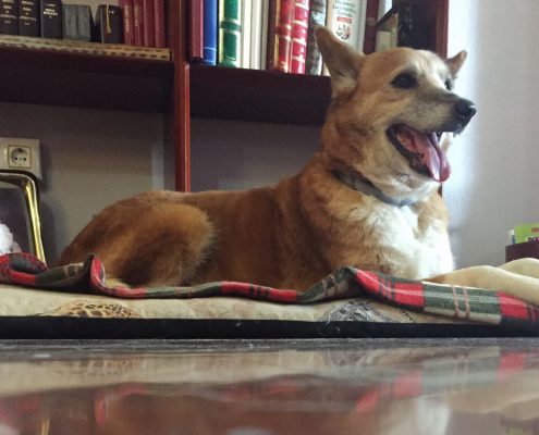 Vilma es una abuelita adorable, de esas que achucharías durante horas sin cansarte. Fue rescatada de la perrera junto a su compañero de viaje Liam. Vilma no ha tenido que tener una vida fácil, la cual le ha dejado huellas evidentes, en forma de cicatrices.