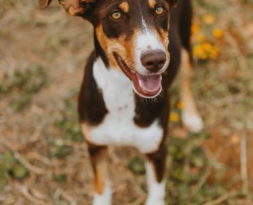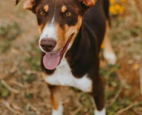 Zafira andaba sola por la cuneta de una carretera, con una herida en la pata. Fue recogida y entró a formar parte de la familia arcana.